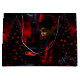 La nuit de noël. Un elfe de Noël à l'ombre de la nuit gothique de noël dont les oreilles pointues se prosternent de sa crinière chatoyante comme les feuilles délicats d'un vieil arbre se dresse au crépuscule sombre d'une cathédrale gothique, où l'ombre et la lumière sont tissées dans une danse éternelle. Un sapin de Noël, orné de décorations rouges, s'élève majestueusement dans l'arrière - plan