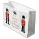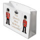 Grand sac fait sur commande brillant de cadeau montrant "la quatre-vingt-douzième célébration de l'anniversaire de la reine" dans la couleur d'or avec des images de deux gardes et et d'une couronne. Toute la ceci est des deux côtés.