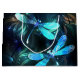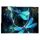 Deux libellules turquoise transparentes, lumineuses et artistiquement dessinées sur fond nocturne avec des algues de lac lumineuses et des lucioles. Libellule lumineuse.