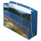 Express votre style de cadeaux avec ce grand sac cadeau avec garniture bleue et dispose d'une photo d'un lac pittoresque avec des fleurs sauvages colorés poussant le long du rivage. Sélectionnez votre style de sac cadeau.