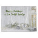 lanterne blanche avec ornements de vacances dans la neige pour Noël. Le texte est modifiable.