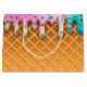 Crème glacée rose, violet et verte à la menthe qui s'écoule sur un cône gaufre aux arômes pastel multicolores.