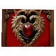 Le coeur gothique du feu et de l'or. Ce design opulent arbore une charpente dorée ornée contre un arrière - plan rouge profond, dégageant une atmosphère de luxe et d'élégance. Le rubis à facettes coeur est habillé d'ailes dorées qui lui donnent une légèreté gracieuse, ainsi que de bijoux en or délicat qui souligne son raffinement. L'interaction des riches tons or, des rubis lumineuses et de l'arrière - plan rouge profond crée une esthétique luxueuse et sensuelle qui allie romance et opulence.