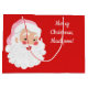 Envelopper les cadeaux de Noël dans le style avec ce sac cadeau personnalisé. Il comporte votre propre message personnalisé ainsi qu'une illustration de style vintage du Père Noël portant un chapeau de Père Noël rose dressé contre un arrière - plan rouge festif.