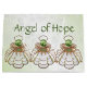C'est l'art graphique de Noël de l'Angel de l'Espoir en couleurs vert et bronze. Il y a des pierres gemmes sur sa jupe, elle tient une plaque avec le mot "Espoir", et sa tête est une pierre verte. L'ange est imprimé trois fois à l'avant et à l'arrière sur un arrière - plan vert-ombre recouvert de flocons de neige. Le texte imprimé en haut peut éventuellement être modifié ou supprimé.