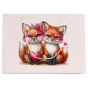 Sac cadeau avec une adorable image de 2 renards portant des lunettes de coeur mignonnes teintées roses. Décoré avec des accents de coeur.