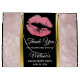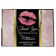 Sac-cadeau de fête (ou autre événement) pour enterrement de vie de jeune fille avec un fond composé d'un motif moderne et tendance de feuilles tropicales doré rose. Superposé sur le dessus se trouve un cadre noir avec une bordure dégradée dorée, à l'intérieur se trouvent des lèvres pailletées roses.