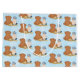 Un petit garçon dans un casquette de baseball assis avec son gros ours en peluche sur un terrain de baseball, un baby shower ou un sac cadeau de premier anniversaire.