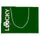 Grand sac cadeau vert foncé brillant avec "Lucky" imprimé verticalement sur le devant en lettres blanches avec un trèfle blanc pour la lettre u. Voir sac cadeau moyen, invitation, enveloppe, confetti, ballotin, étiquette de faveur, étiquette, autocollant carré et papier d'emballage. Voir toute la collection de sacs-cadeaux de la Saint-Patrick dans les TOUCHES SPÉCIALES| Section Favoris.
