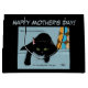 Célébrez la fête des mères avec un peu d'impertinence directement de votre seigneur félin. Cette illustration ludique présente un chat noir élégant aux yeux verts saisissants drapé de manière dramatique sur le bord d'un canapé, accompagné du message humoristique :