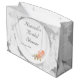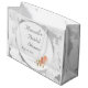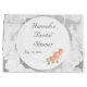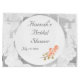 La conception comprend une image de fond de dentelle blanche et délicate. Le centre est blanc avec un texte personnalisable dans une police Nuptial de couleur argent. L'image de roses tendres et pêche orne le bas. Parfait pour un mariage.