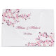 Design romantique de fleurs de cerisiers de printemps. Un joli rose fleurit sur un arrière - plan blanc. Avec des noms de mariée et de mariée personnalisés et la date de mariage dans un script élégant.