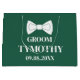 Moderne, élégant, masculin, émeraude vert et blanc grand sac cadeau pour le marié. Parfait pour les faveurs de mariage. Vous pouvez le personnaliser avec votre nom et date.