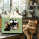 Quatre Chats regroupés autour d'une boîte en carton sur fond de vert