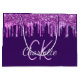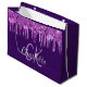 Grand Sac Cadeau Monogramme aux gouttes de rose et paillettes viole
