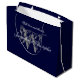 Grand Sac Cadeau Monogramme Marine Bleu Argent Blanc Élégant Mariag
