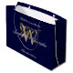 Grand Sac Cadeau Monogramme Marine Bleu & Or Mariage élégant
