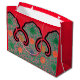 GRAND SAC CADEAU MOTIF CHINOIS FLORAL ANTIQUE DANS UN CADEAU ROUGE