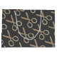 Grand Sac Cadeau Motif de ciseaux or gris foncé