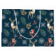 Grand Sac Cadeau Motif de Noël avec cerfs et pinces bleu
