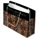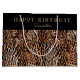 Cet élégant sac cadeau unique dispose d'un motif poster de animal safari branché en marron, noir et beige. Une bande noire se trouve en haut de la conception et dispose d'un modèle de texte à personnaliser avec le texte désiré. Vous pouvez modifier le texte "Joyeux anniversaire" à n'importe quelle occasion. Personnalisez le nom avec n'importe quel nom ou autre désiré. Le destinataire se sentira spécial de recevoir un cadeau dans ce joli sac qui porte son nom.