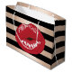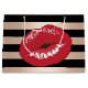 Grand Sac Cadeau motif rose de rayures de noir d'or de lèvres