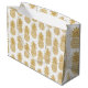 Grand Sac Cadeau Motif tropical élégant d'ananas d'or blanc