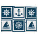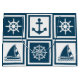 Design à thème nautique avec voilier, voilier, boussole et décoration d'ancre en carré rayé blanc et bleu