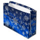 Grand Sac Cadeau Noël aux flocons de neige bleus et argentés