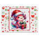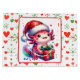 Un mignon sac cadeau de Noël axolotl de dessin animé pour un enfant. Un axolotl mignon portant un chapeau de Père Noël entouré de coeurs et de flocons de neige en cadeau.