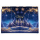 Grand Sac Cadeau Noël magique - flocons de neige dorés,