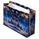 La saison de Noël - un temps plein d'émerveillement, de joie, d'espoir, d'attentes et de surprises. Ce sac cadeau comporte des flocons de neige dorés tourbillonnant dans le ciel bleu de la nuit au-dessus de la forêt d'hiver. Magnifique sac cadeau pour tout le monde!