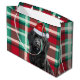 Les Amoureux de les chiens adoreront recevoir ou donner ce mignon sac cadeau de saison des fêtes, avec un chic chien Labradoodle sur un arrière - plan rouge et vert plaid à motifs de vacances.