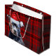 Les Amoureux de les chiens adoreront recevoir ou donner ce mignon sac cadeau de saison des fêtes, avec un Bluenose Pit Bull chien sur un plaid rouge et gris pour un arrière - plan à motifs de vacances.