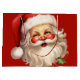 Sac cadeau avec une joyeuse illustration d'un Père Noël de style vintage avec des joues rouges roses. portant son chapeau de Père Noël rouge classique et son grand ours blanc. Un spring de saint ajoute à l'esprit festif de fête de ce design.