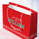 Grand Sac Cadeau Noël Santa Chapeau Nom Typographie Rouge Vert