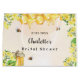 Pour une fête de mariage et la mariée à abeille. Jolies abeilles, fleurs jaunes et miel qui coule d'un nid d'abeille. Personnalisez et ajoutez une date, un nom et un texte. Le nom est écrit avec un style de lettre manuscrit moderne.