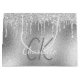 Un fond métallisé argenté faux avec des gouttes de paillettes fausses, aspect de peinture qui coule. Personnalisez et ajoutez un nom et des initiales de monogramme. Le nom est écrit avec un style de script manuscrit moderne. Lettres blanches et grises. Parfait pour les anniversaires, la douche de mariée, la baby shower.
