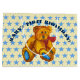 Cet ours petit et duveteux est une création originale à l'acrylique sur papier aquarelle, c'est l'une de mes peintures. L'illustration de l'ours en peluche se détache sur un fond d'étoiles bleues. Le texte en arc 'PREMIER ANNIVERSAIRE DE BÉBÉ' peut être personnalisé avec le nom de l'enfant, votre texte ou supprimé. La couleur de fond peut également être personnalisée.