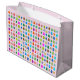 Beaucoup d'oeufs colorés de Pâques sur un grand sac cadeau rose.