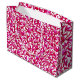 Grand sac cadeau dans une tapisserie de William Morris Art Nouveau motif d'oiseaux exotiques dans un grenadier, avec feuilles fuchsia rose et violet, oiseaux et fruits dans fuchsia et orchidée rose sur un arrière - plan blanc