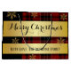 Un mélange de styles qui se complètent bien. Un or élégant avec un plaid de campagne et un accueil "Joyeux Noël". Personnalisez avec votre propre message.