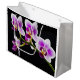 Une superbe orchidée blanche et violette se distingue avec grâce par son arrière - plan noir profond, ses pétales présentant un délicat mélange de couleurs qui symbolise l'élégance et la sérénité. Cette fleur exquise, souvent associée au luxe et à la beauté, attire l'attention avec ses motifs complexes et ses teintes vibrantes. Le contraste entre les couleurs vives de l'orchidée et le fond sombre renforce son allure éthérée, ce qui en fait un sujet captivant aussi bien pour les photographes que pour les botanistes.