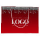 Emballez votre cadeau avec élégance dans ce sac à l'aide de cet élégant sac cadeau présentant des paillettes argentées qui coulent, un fond ombré rouge et un logo personnalisé. Ajoutez facilement vos coordonnées en cliquant sur l'option "personnaliser ce modèle".