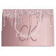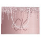 Un fond métallisé faux rose pastel avec des gouttes de paillettes fausses, aspect peinture qui coule. Personnalisez et ajoutez un nom et des initiales de monogramme. Le texte : Le nom est écrit avec une écriture manuscrite moderne de style script. Parfait pour les anniversaires, les baby showers et les enterrements de vie de jeune fille.