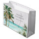 Grand Sac Cadeau Palmier Tropical Personnalisé Feuilles Plage Bleue