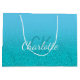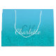 Grand Sac Cadeau parties scintillant bleu turquoise aqua monogramme