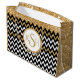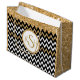 Grand Sac Cadeau Parties scintillant noir blanc et or Motif Chevron