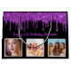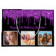 Pour un 50ème anniversaire (ou tout âge). Un élégant arrière - plan noir. Avec des gouttes de faux parties scintillant violet, la peinture goutte à goutte. Personnalisez et ajoutez 3 de vos propres photos, une date, un nom et 50 ans. Texte mauve. Le nom est écrit avec un script de style moderne écrit à la main.