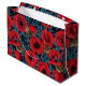 Grand Sac Cadeau Pavot rouge et brunes, feuilles bleus sur noir